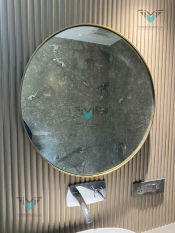 BrassMatt LED Mirror: Philips LED, matt brass PVD SS 304 frame, 5mm Belgium/Modi Guard mirror, white LED. 5-year warranty. Customization available. Contact +919944603337.